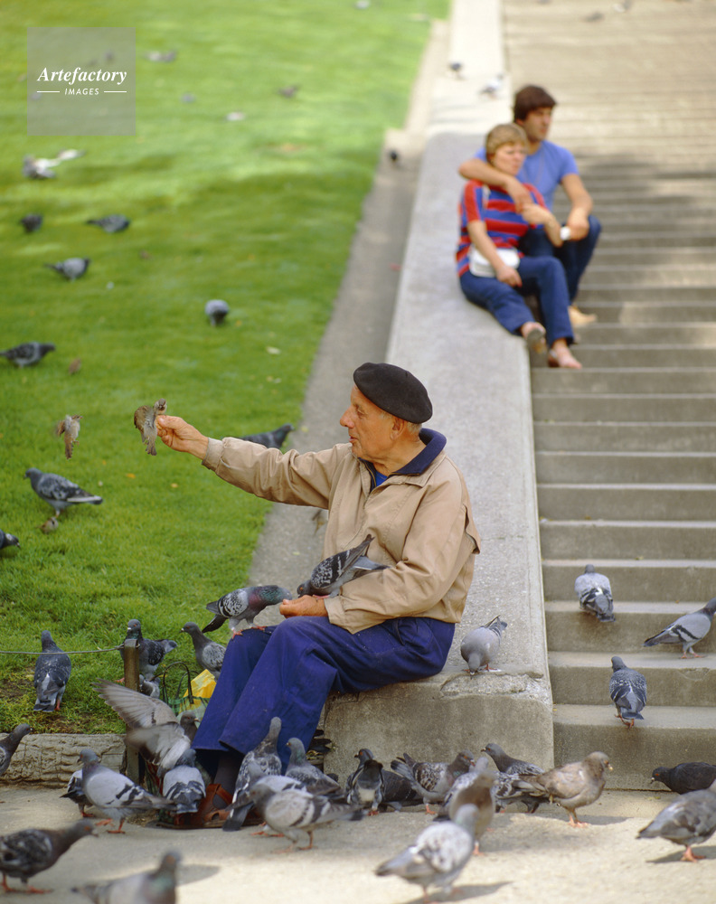モンマルトルの丘,老人,鳩,すずめ,カップル