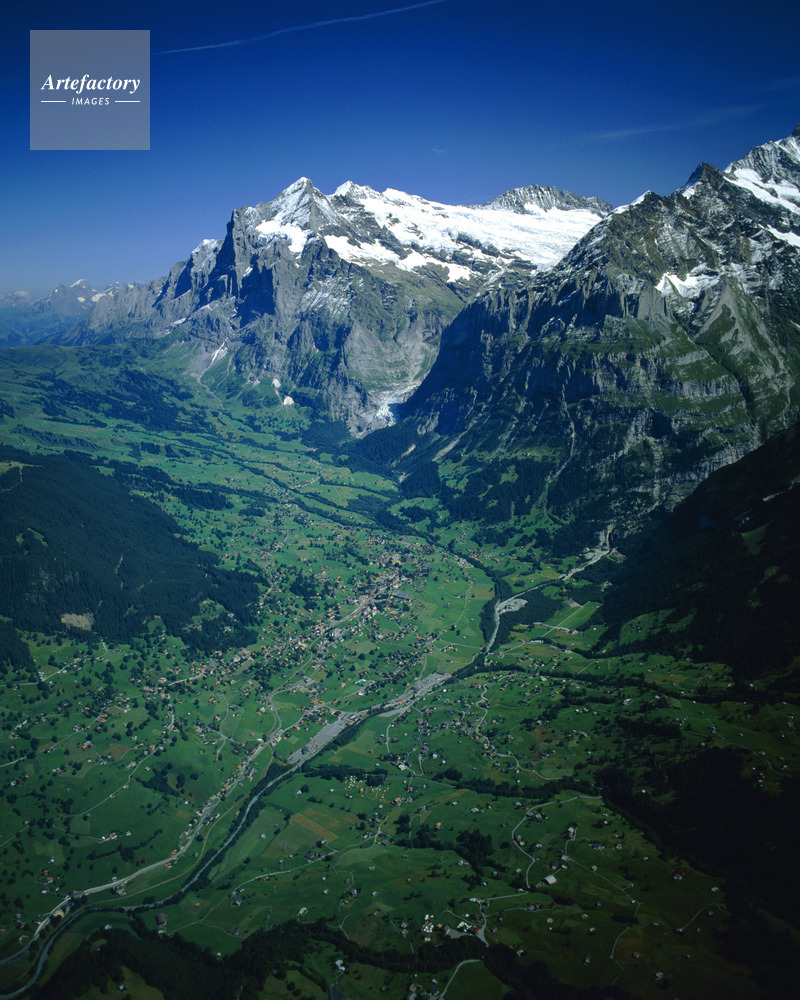グリンデルワルトの村,ヴェッターホルン, Wetterhorn,標高,3702m,山,Mountain,ベルン州,Canton of Berne,ベルナー・オーバーラント,Berner Oberland,ユングフラウ地方,Jungfrau,グリンデルワルト,グリンデルヴァルト,Grindelwald,航空写真,Aero photo,Aerophotograph