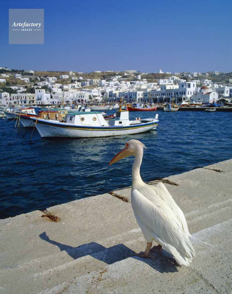 作品タイトル     エーゲ海,Aegean Sea,キクラデス諸島,Cyclades,ミコノス島,Mykonos,ミコノス島の港,港,Port,ペリカン,Pelican,鳥,Bird,島,Island,海,Sea,海洋,Ocean モデルリリース なし