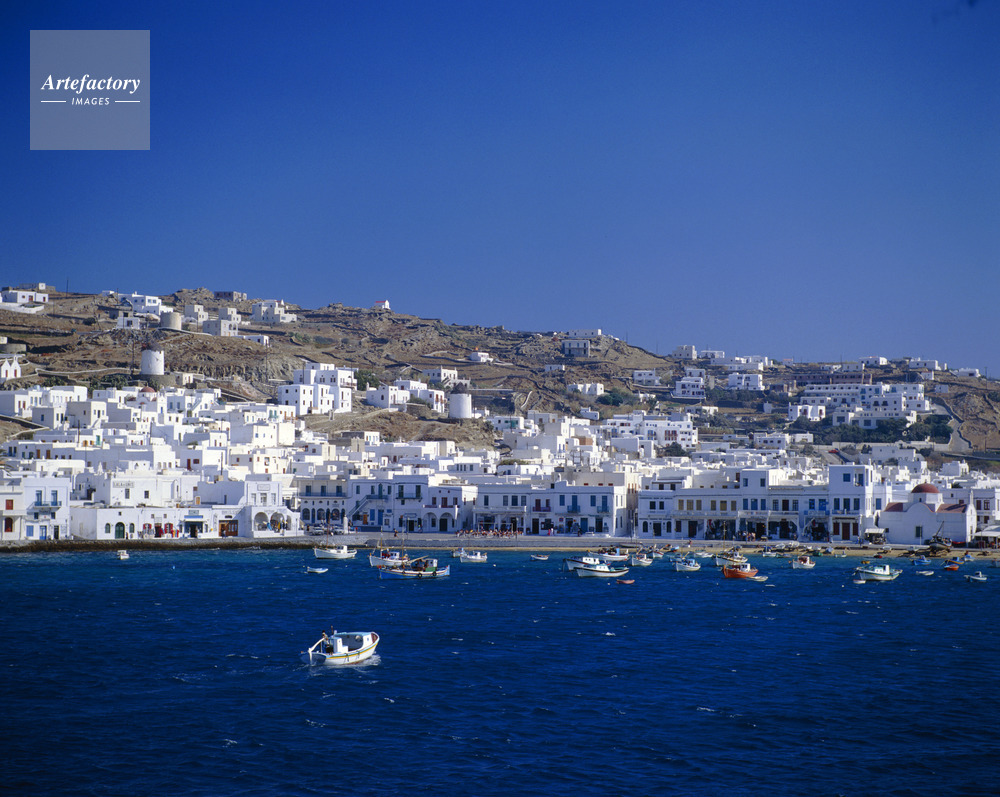 エーゲ海,Aegean Sea,キクラデス諸島,Cyclades,ミコノス島,Mykonos,ミコノス島の港,港,Port,漁船,Fishing boat,島,Island,海,Sea,海洋,Ocean