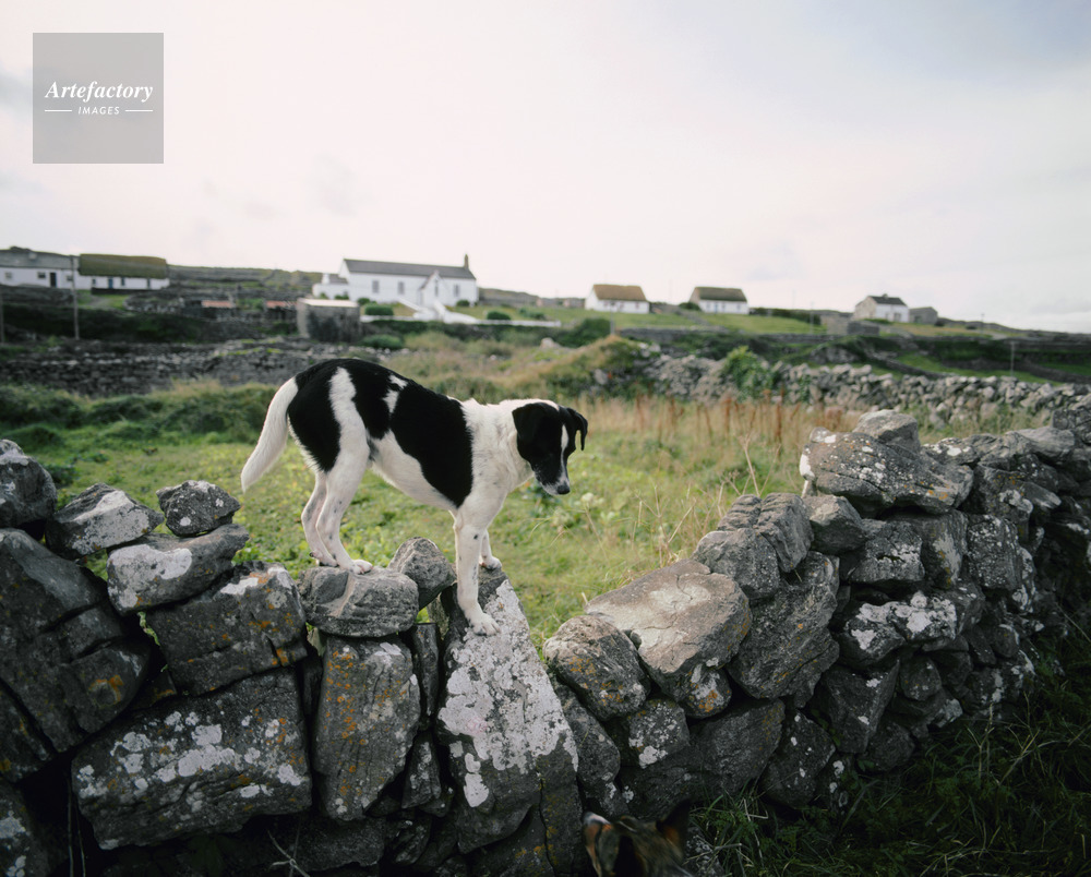 アラン諸島,アラン島,Aran Islands,Oileain Arann,イニシュモア島,Inishmore,Inis Mor,シュモア,大島,石灰質,岩盤,民家,石垣,犬,シープドッグ