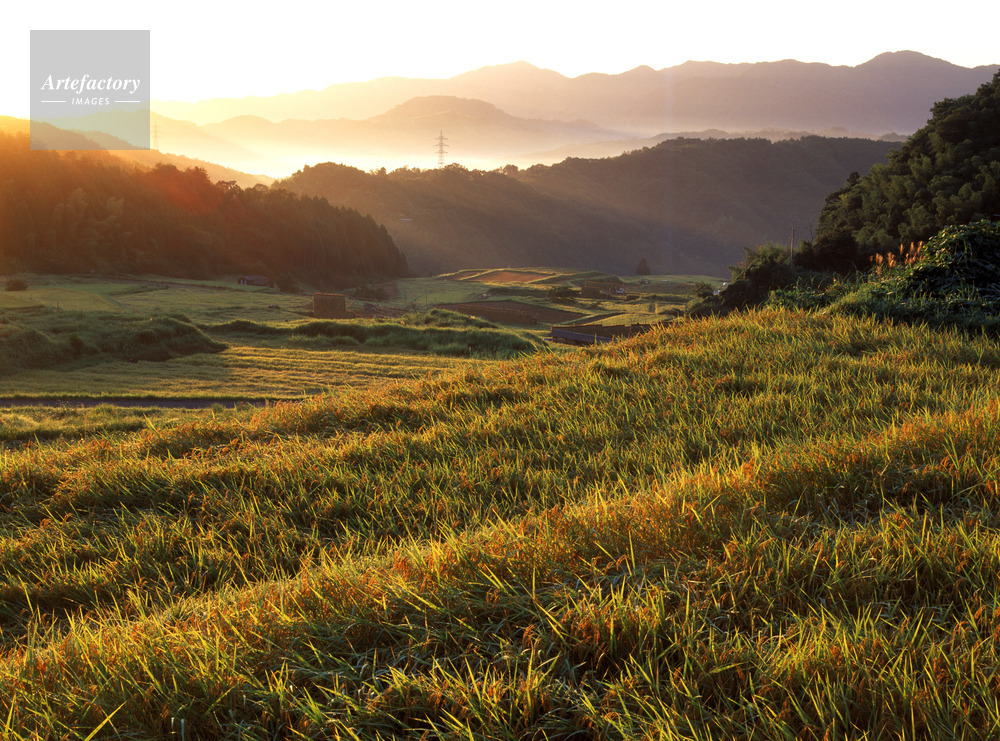 | 作品タイトル | 山王寺・稲刈りの頃、朝景色の大山遠望 棚田百選 | モデルリリース | なし | |