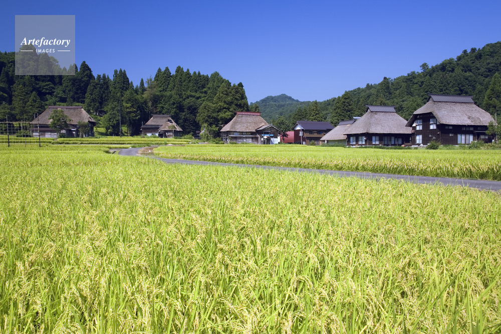 | 作品タイトル | コシヒカリ実る.かやぶき集落(環状集落) | モデルリリース | なし | |