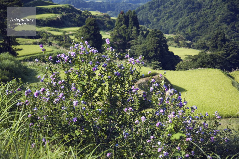 | 作品タイトル | ムクゲ咲く花坂の棚田 | モデルリリース | なし | |