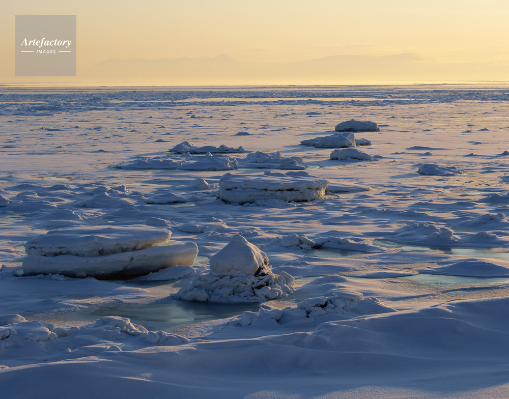 作品タイトル     流氷と知床連峰の朝 モデルリリース なし