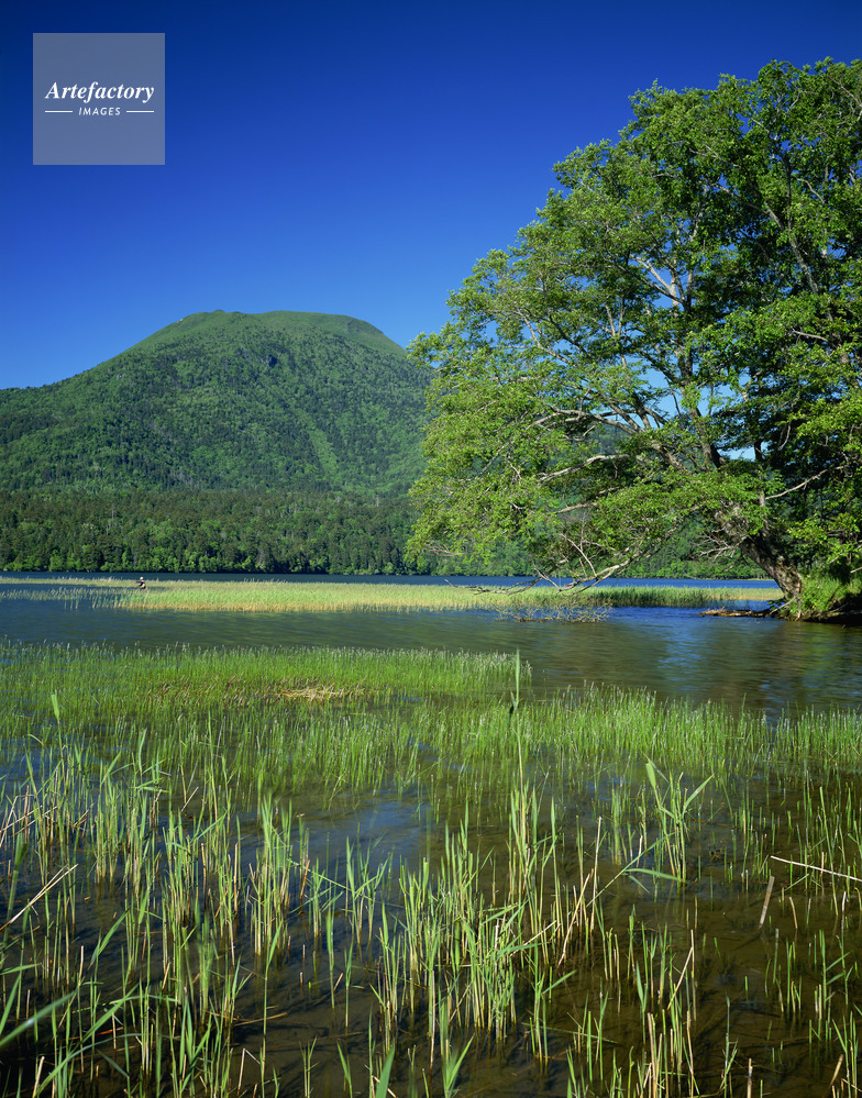 作品タイトル     新緑の阿寒湖と雄阿寒岳 モデルリリース なし