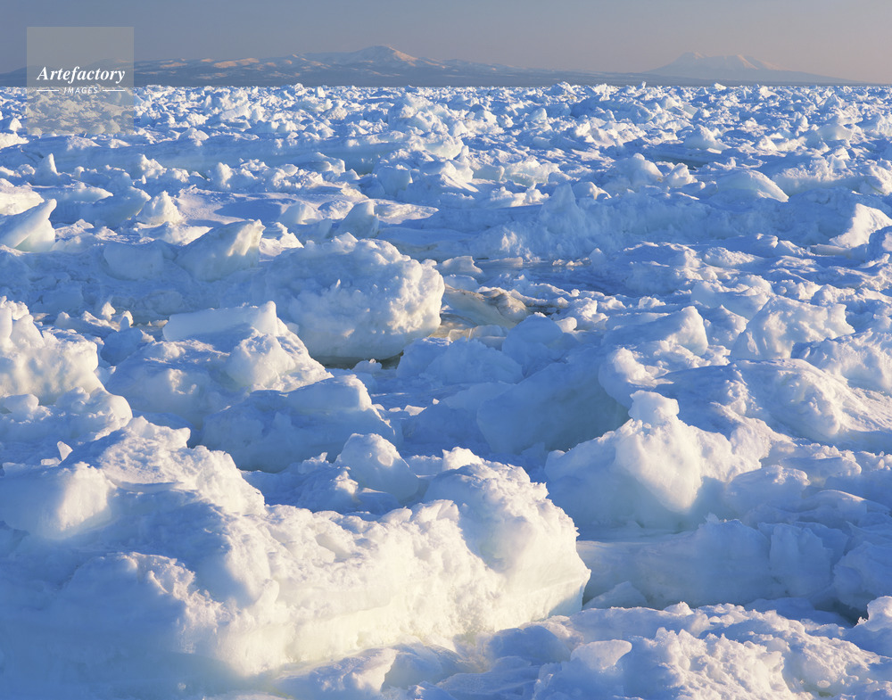 | 作品タイトル | 野付水道を埋め尽くす朝日に染まる流氷と国後島 | モデルリリース | なし | |