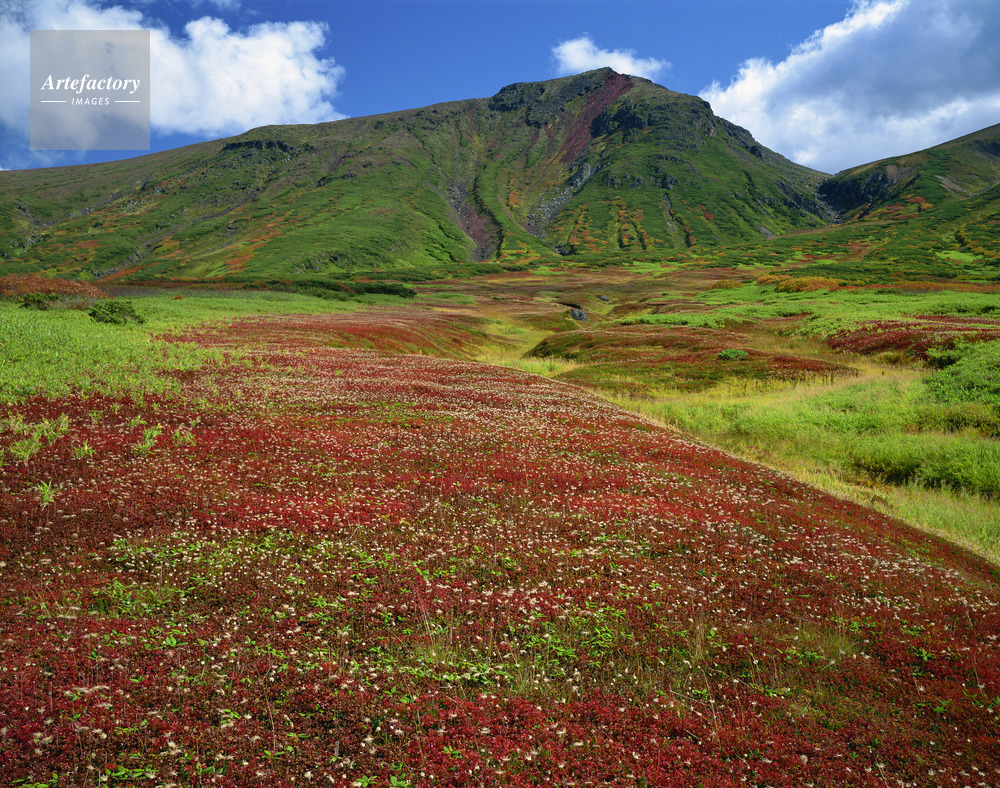 作品タイトル     チングルマ紅葉の裾合平から熊ヶ岳。大雪山 国指定天然記念物 モデルリリース なし