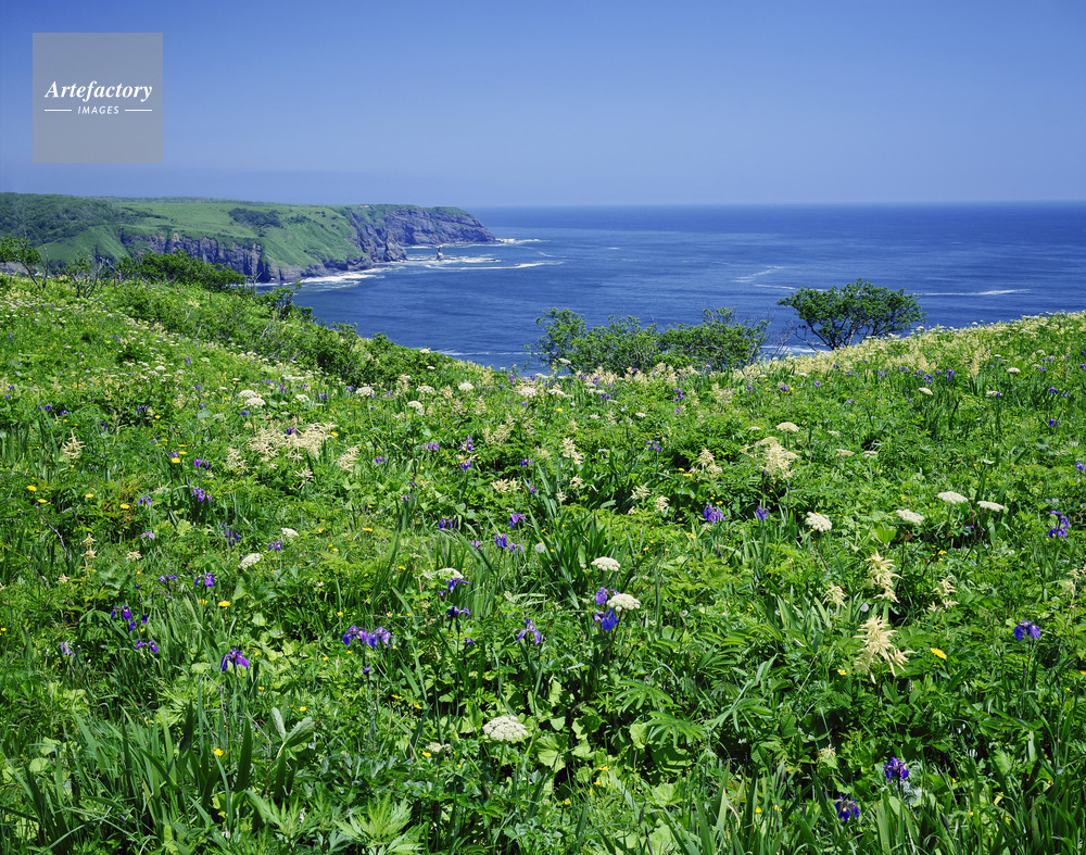 | 作品タイトル | ヒオウギアヤメ咲くアヤメヶ原と青い海 | モデルリリース | なし | |