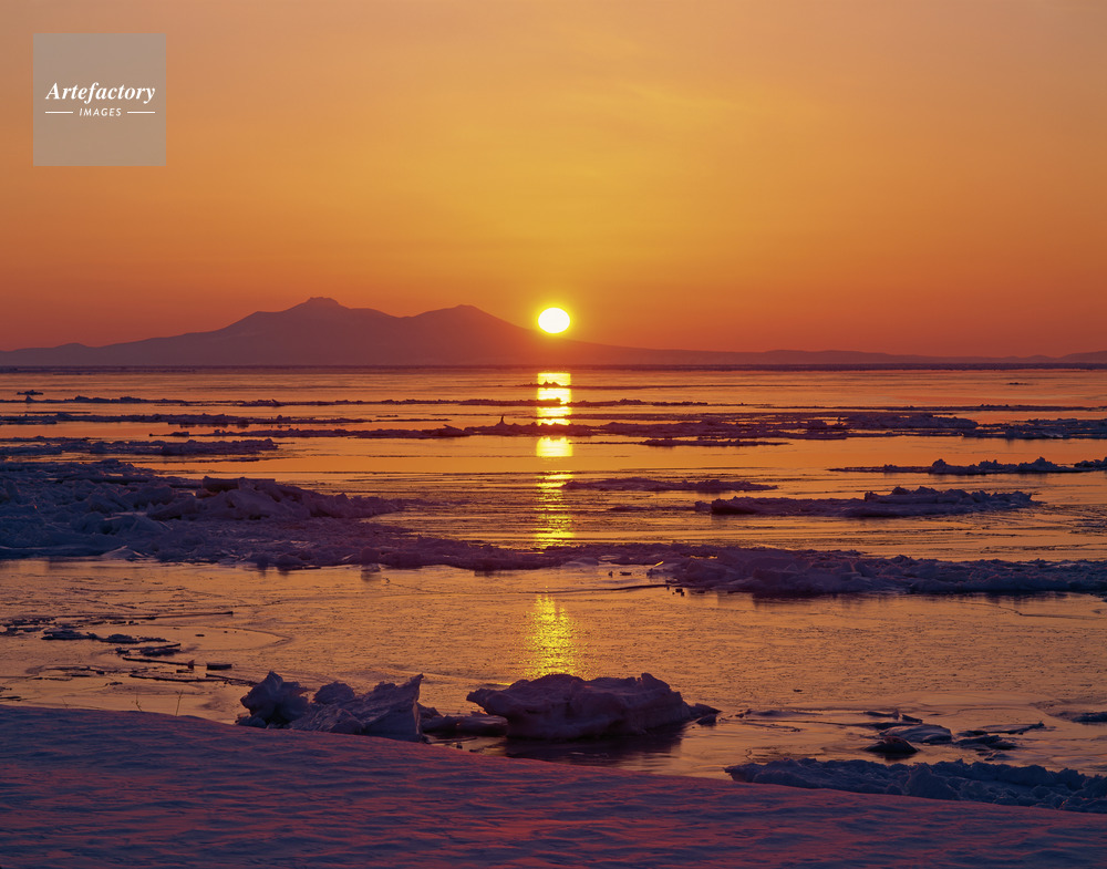 | 作品タイトル | 流氷と国後島羅臼山朝日 | モデルリリース | なし | |