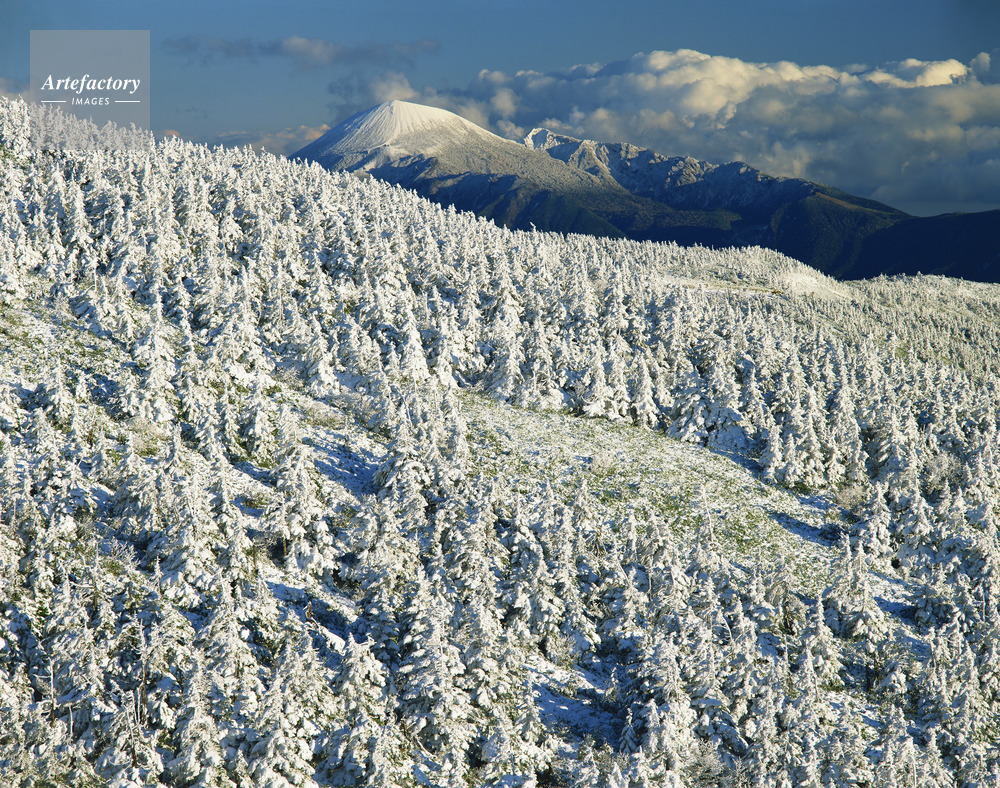 | 作品タイトル | アオモリトドマツ樹氷群と岩手山(南部富士)。八幡平 | モデルリリース | なし | |