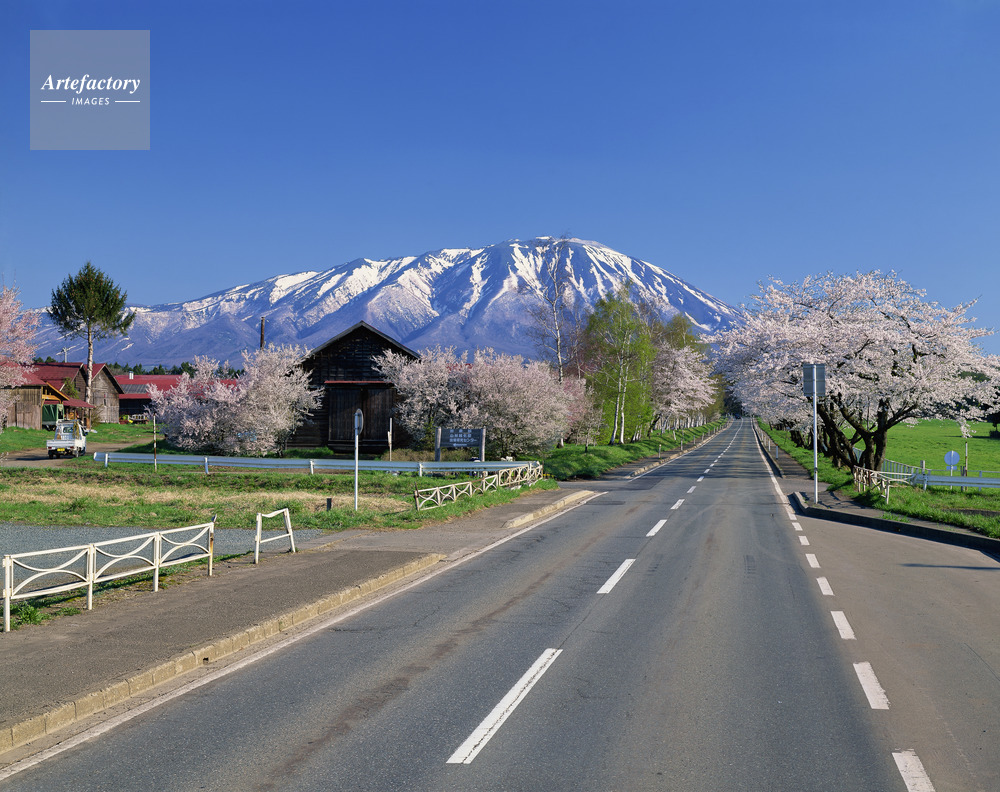 | 作品タイトル | 桜咲く道路と岩手山(南部富士)。小岩井農場付近 | モデルリリース | なし | |