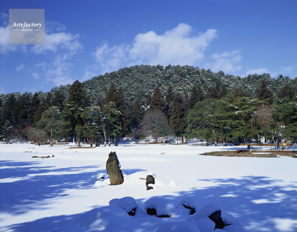 作品タイトル     毛越寺庭園 雪景 名勝庭園 モデルリリース なし