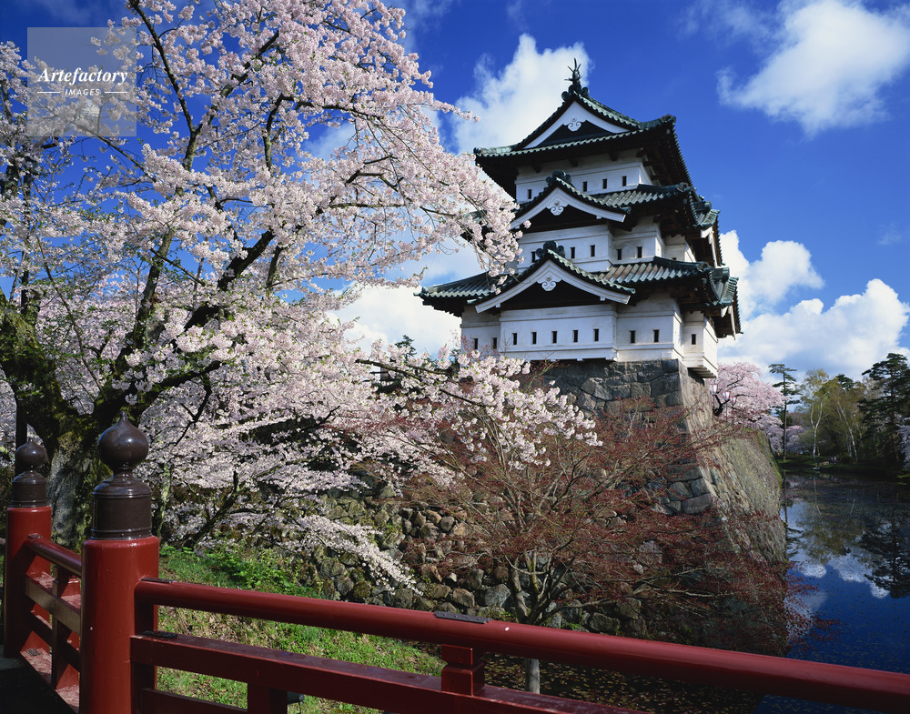 | 作品タイトル | 桜咲く下乗橋から望む天守閣。弘前城跡 さくら名所百選 日本100名城 | モデルリリース | なし | |