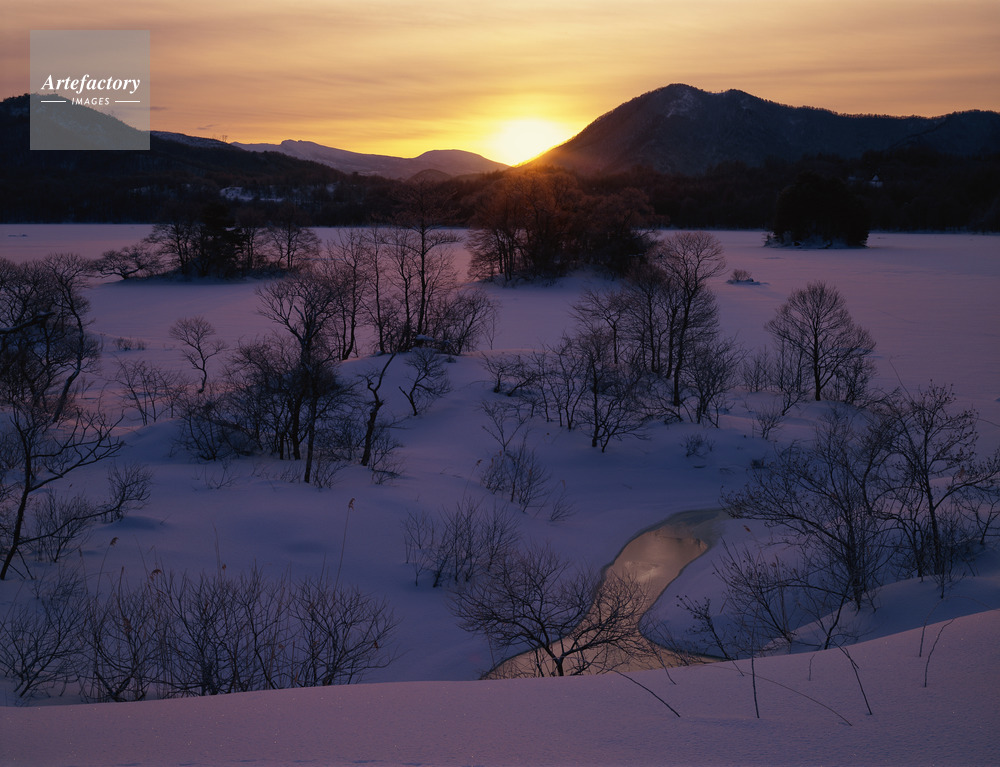 | 作品タイトル | 雪の小野川湖と朝日。磐梯高原 | モデルリリース | なし | |
