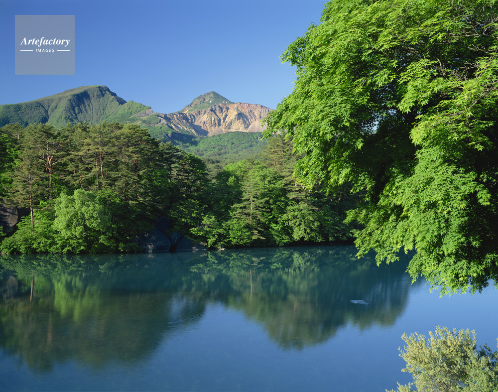 | 作品タイトル | 新緑の毘沙門沼から磐梯山(会津富士)。磐梯高原・五色沼 | モデルリリース | なし | |