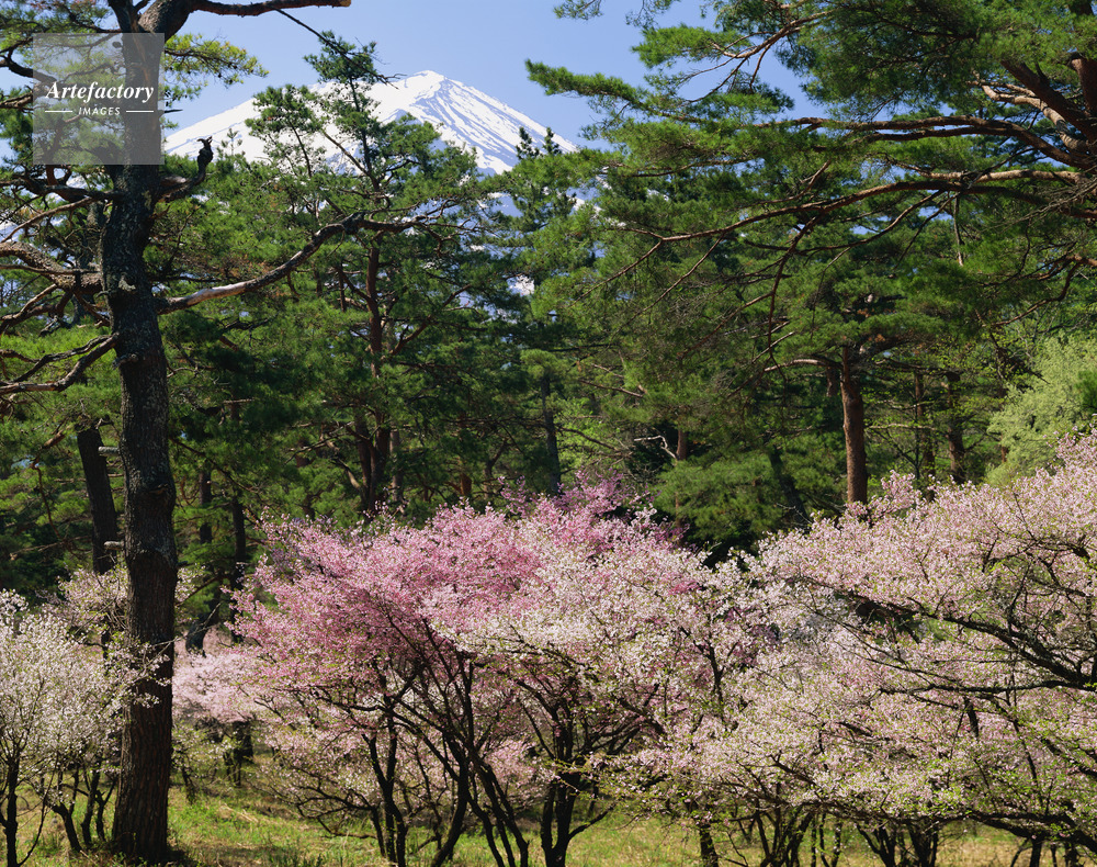 | 作品タイトル | アカマツ林の林床に咲くフジザクラ(マメザクラ)から富士山 国指定天然記念物 | モデルリリース | なし | |