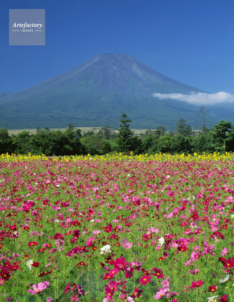 | 作品タイトル | コスモス・ヒマワリ咲く花の都公園から富士山 | モデルリリース | なし | |