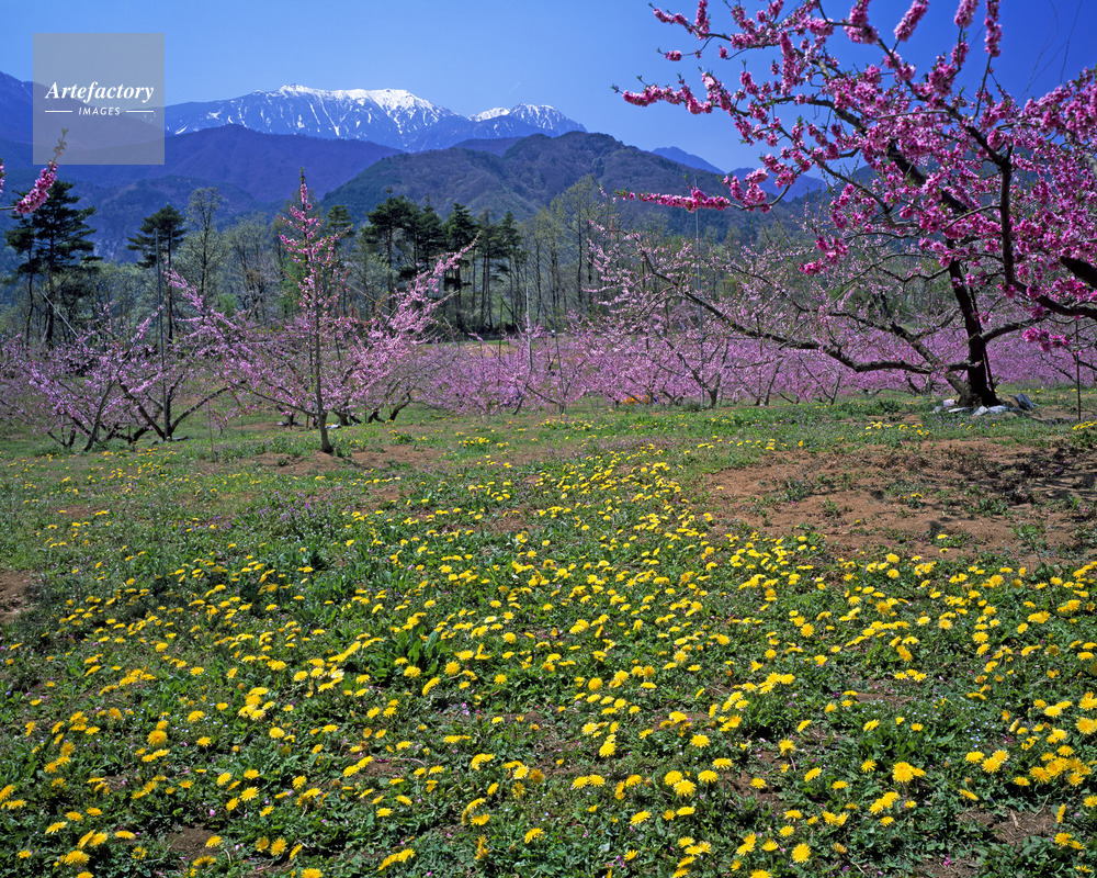 | 作品タイトル | タンポポと桃の花咲く新府から南アルプス | モデルリリース | なし | |