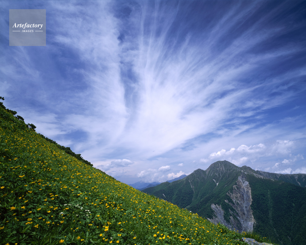 | 作品タイトル | シナノキンバイ咲く前小河内岳から塩見岳。南アルプス | モデルリリース | なし | |