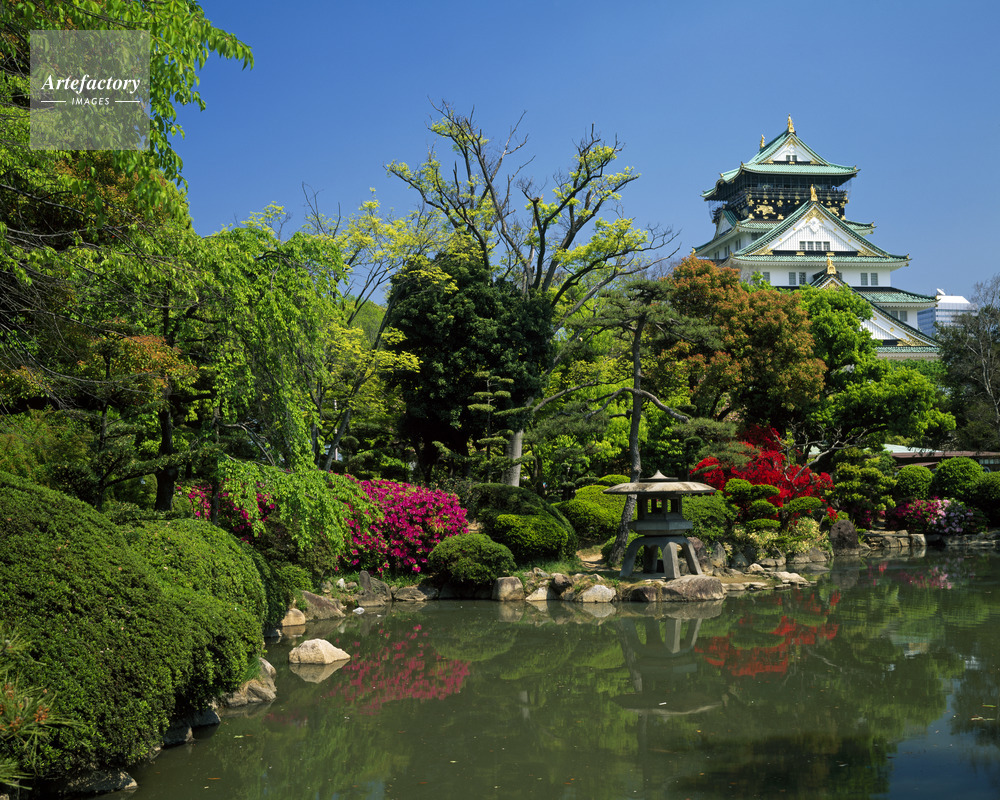| 作品タイトル | 新緑とツツジ咲く日本庭園から大阪城天守閣 | モデルリリース | なし | |