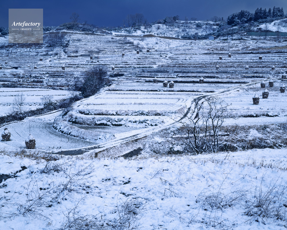 | 作品タイトル | 神奈備の里(稲渕)春雪 棚田百選 | モデルリリース | なし | |
