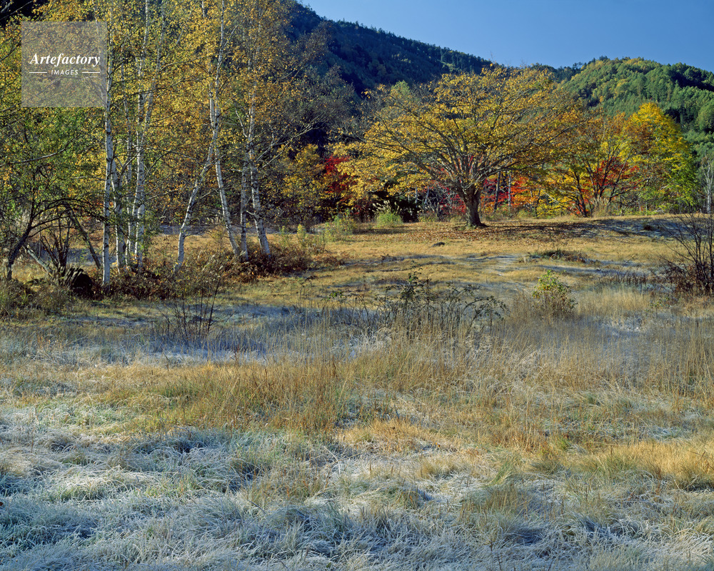 | 作品タイトル | 紅葉の木々と霜の朝。乗鞍高原にて | モデルリリース | なし | |