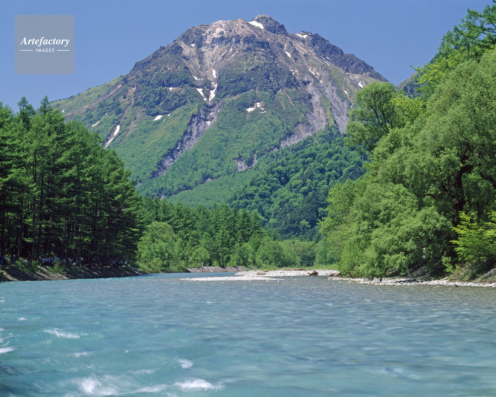 | 作品タイトル | 新緑の梓川と焼岳。上高地にて 名勝・国指定天然記念物 | モデルリリース | なし | |