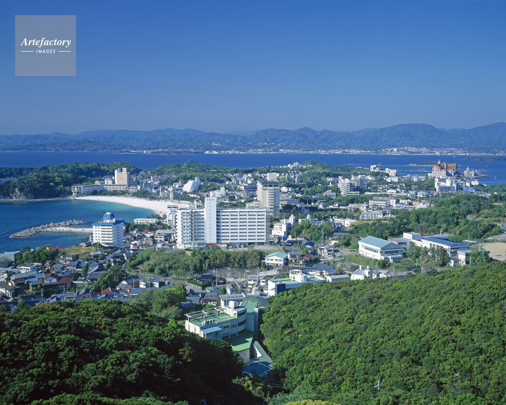 | 作品タイトル | 平草原から新緑の白浜温泉展望 | モデルリリース | なし | |