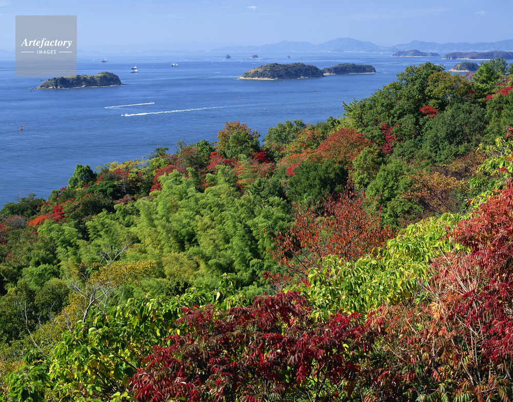 作品タイトル     紅葉の三百山より水島灘の島々 モデルリリース なし
