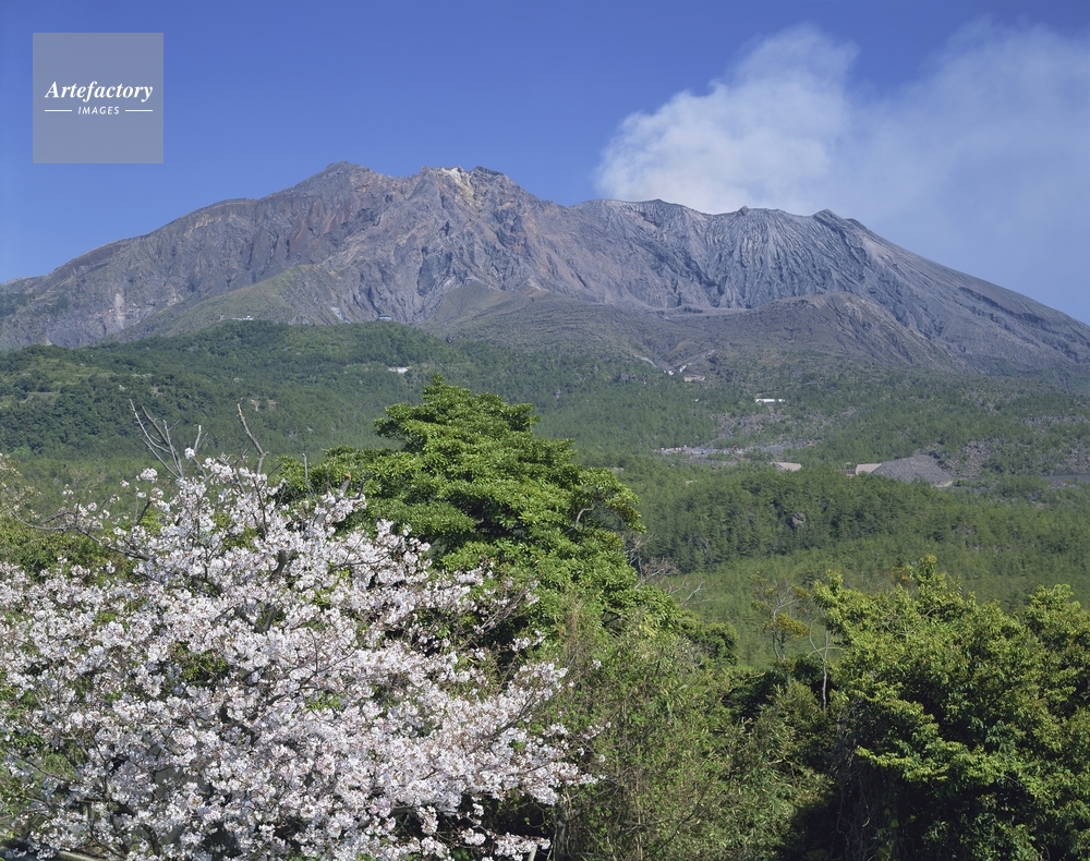 作品タイトル     桜島自然恐竜公園の桜と桜島(筑紫の富士) モデルリリース なし