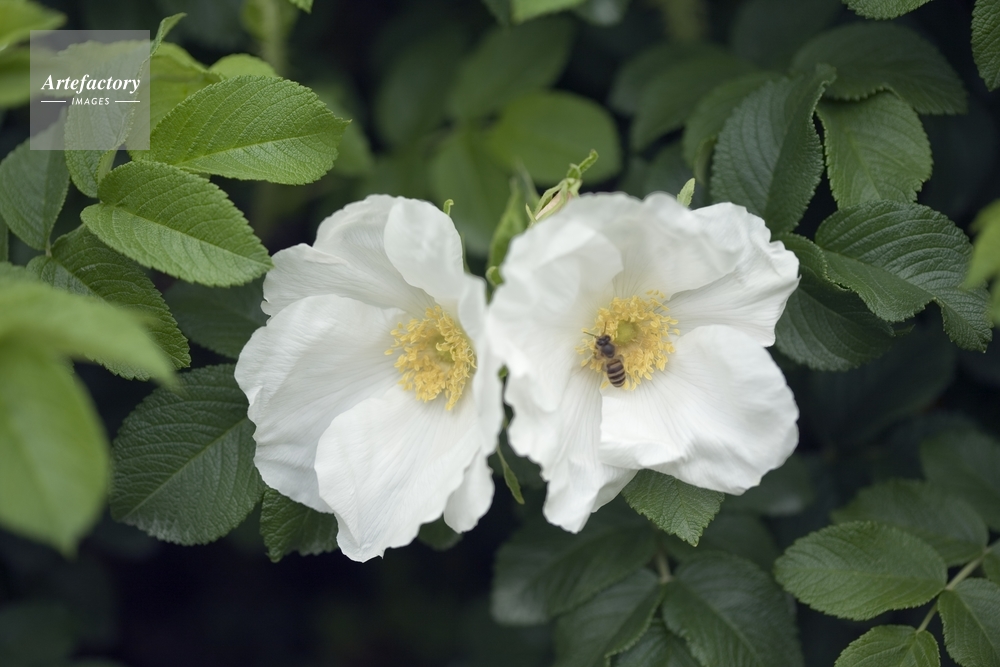 | 作品タイトル | バラ科 シロバナハマナスとミツバチ | モデルリリース | なし | |