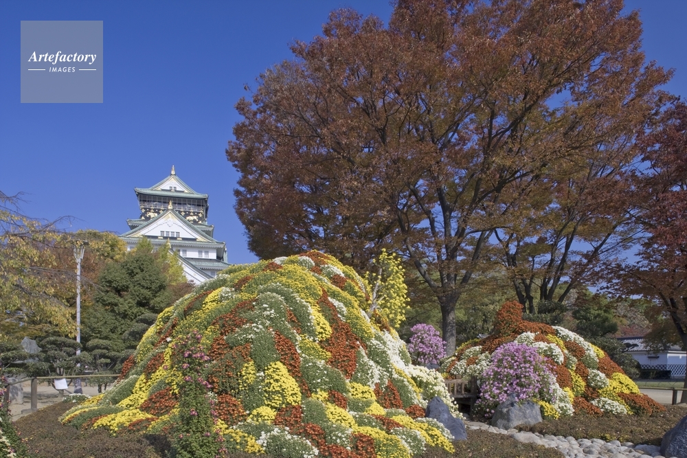 作品タイトル     菊花展と紅葉の大阪城 モデルリリース なし
