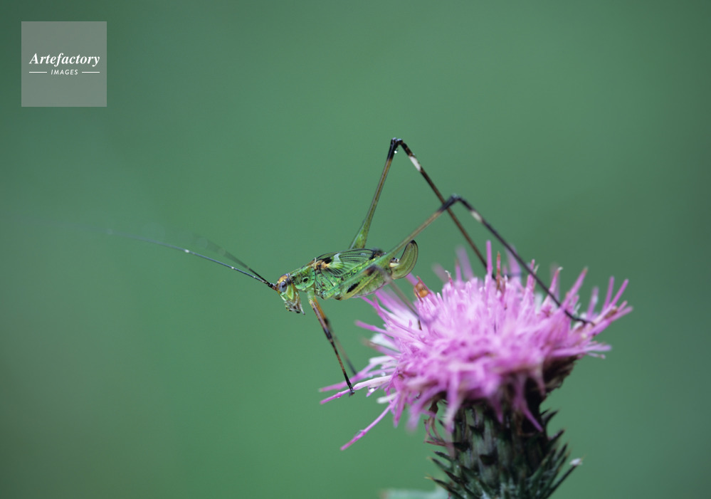 | 作品タイトル | 野原アザミと脚黒露虫(アシグロツユムシ)の幼虫 | モデルリリース | なし | |