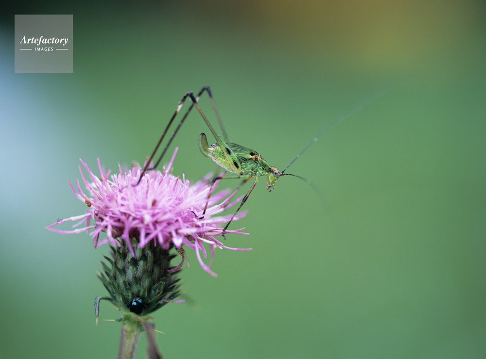 | 作品タイトル | 野原アザミと脚黒露虫(アシグロツユムシ)の幼虫 | モデルリリース | なし | |