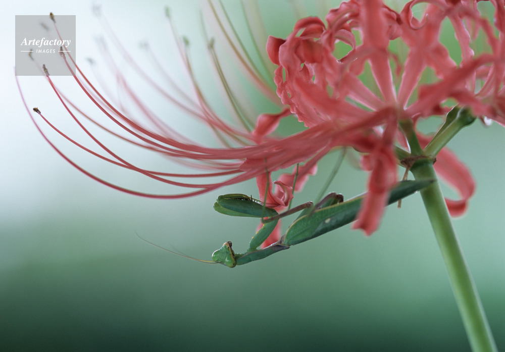 | 作品タイトル | 彼岸花と蟷螂(ハラビロカマキリ) | モデルリリース | なし | |