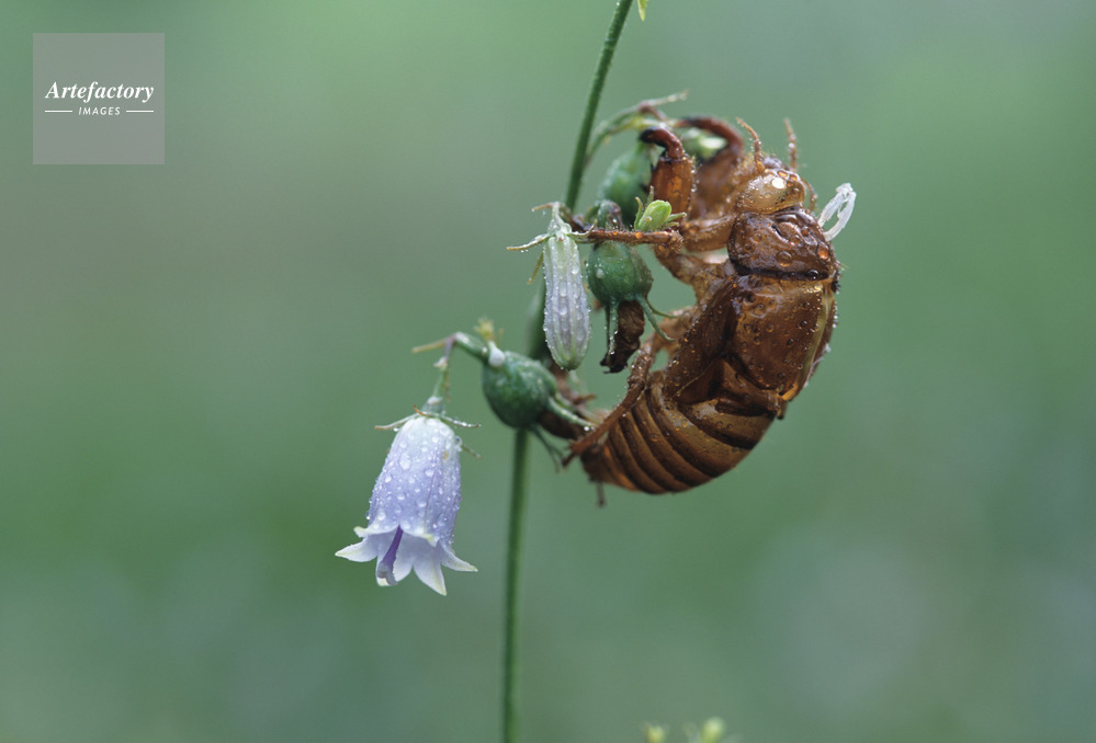 | 作品タイトル | 釣り鐘人参(ツリガネニンジン)と蝉の抜け殻 | モデルリリース | なし | |