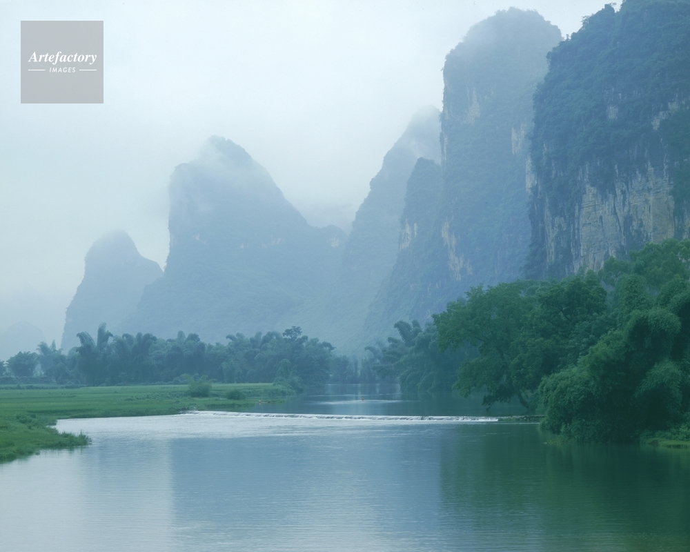 作品タイトル     陽朔,高田,川,竹林,霧,山並 モデルリリース なし