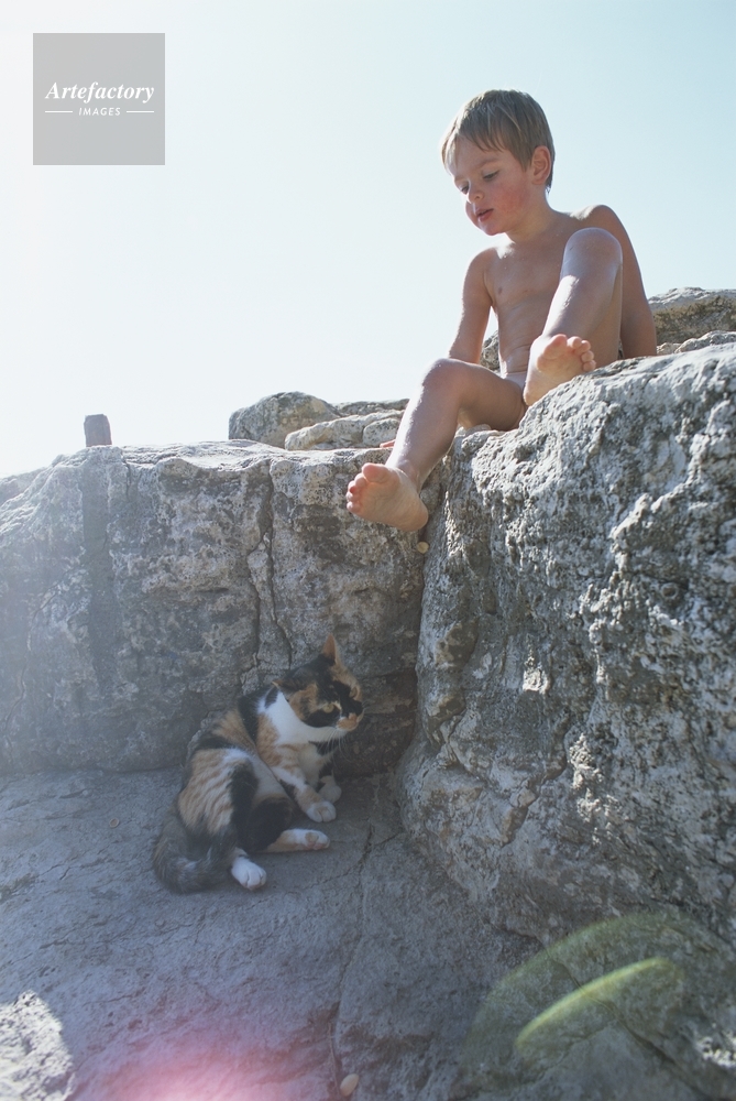 | 作品タイトル | 岩影で遊ぶ猫と少年 | モデルリリース | なし | |