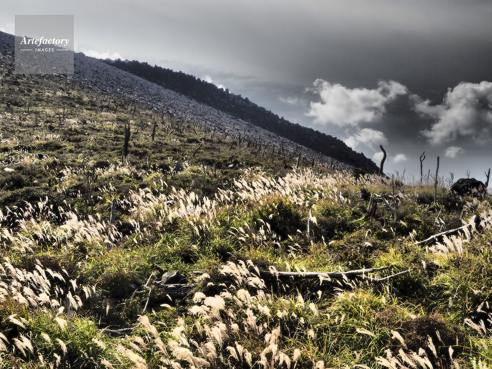 | 作品タイトル | 新燃岳の溶岩と噴火からの植生回復した草原 | モデルリリース | なし | |