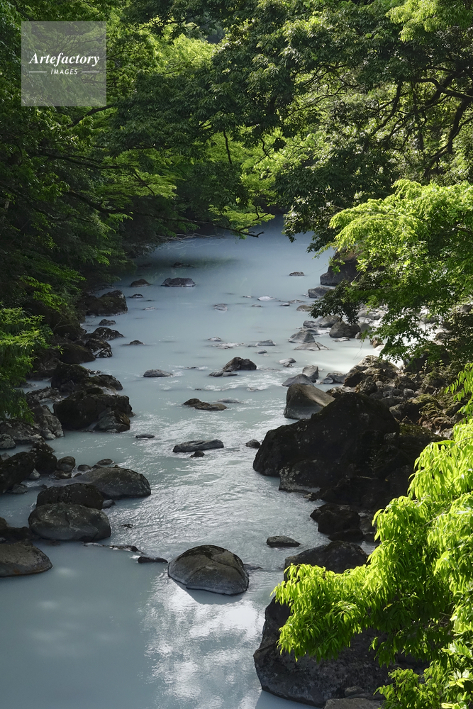 | 作品タイトル | 噴火した硫黄山の白濁した温水が流れ込んだ河川の新緑 | モデルリリース | なし | |