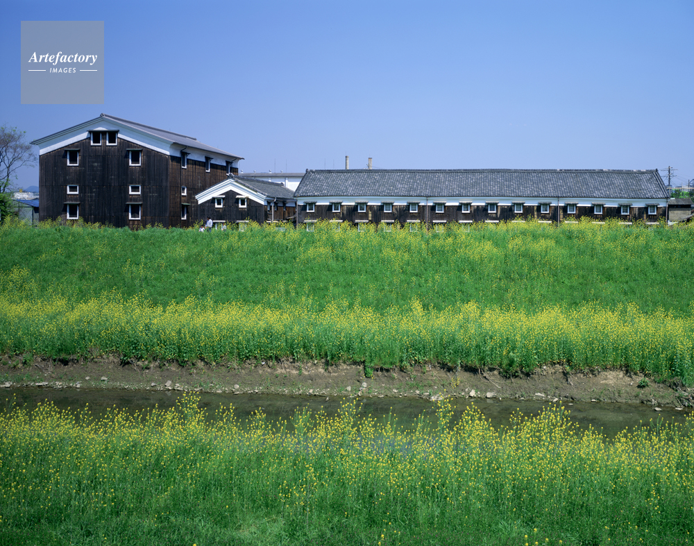 作品タイトル     黄色い花と伏見の酒蔵 モデルリリース なし