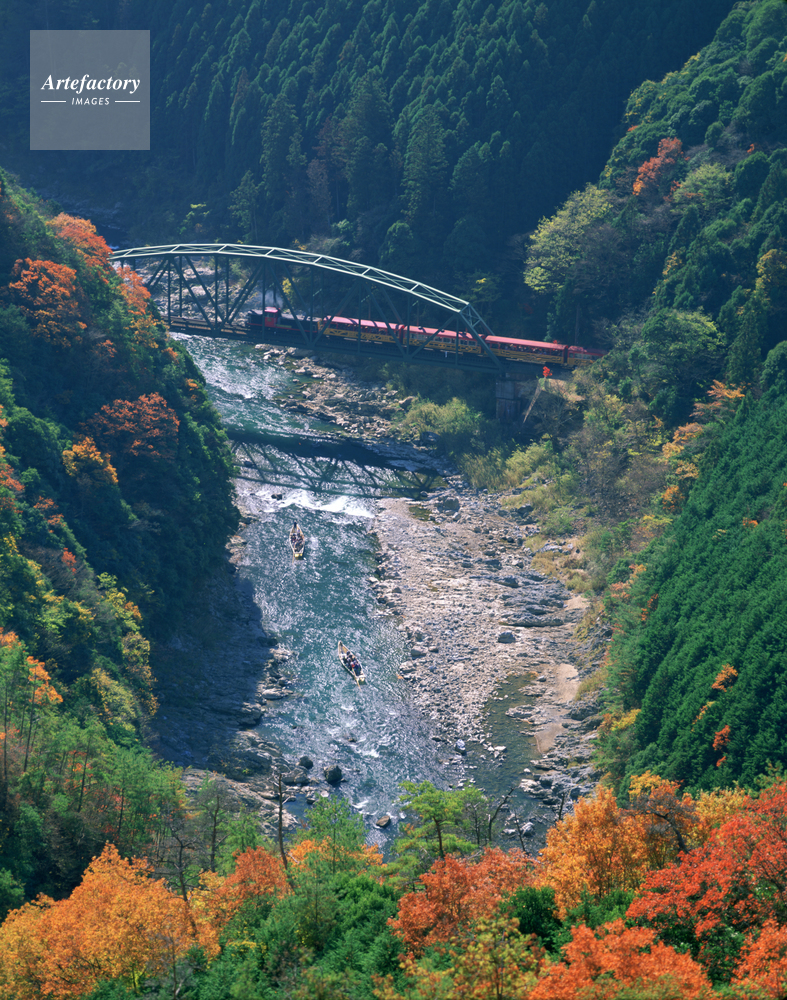 | 作品タイトル | 秋の保津川下り船とトロッコ列車 | モデルリリース | なし | |