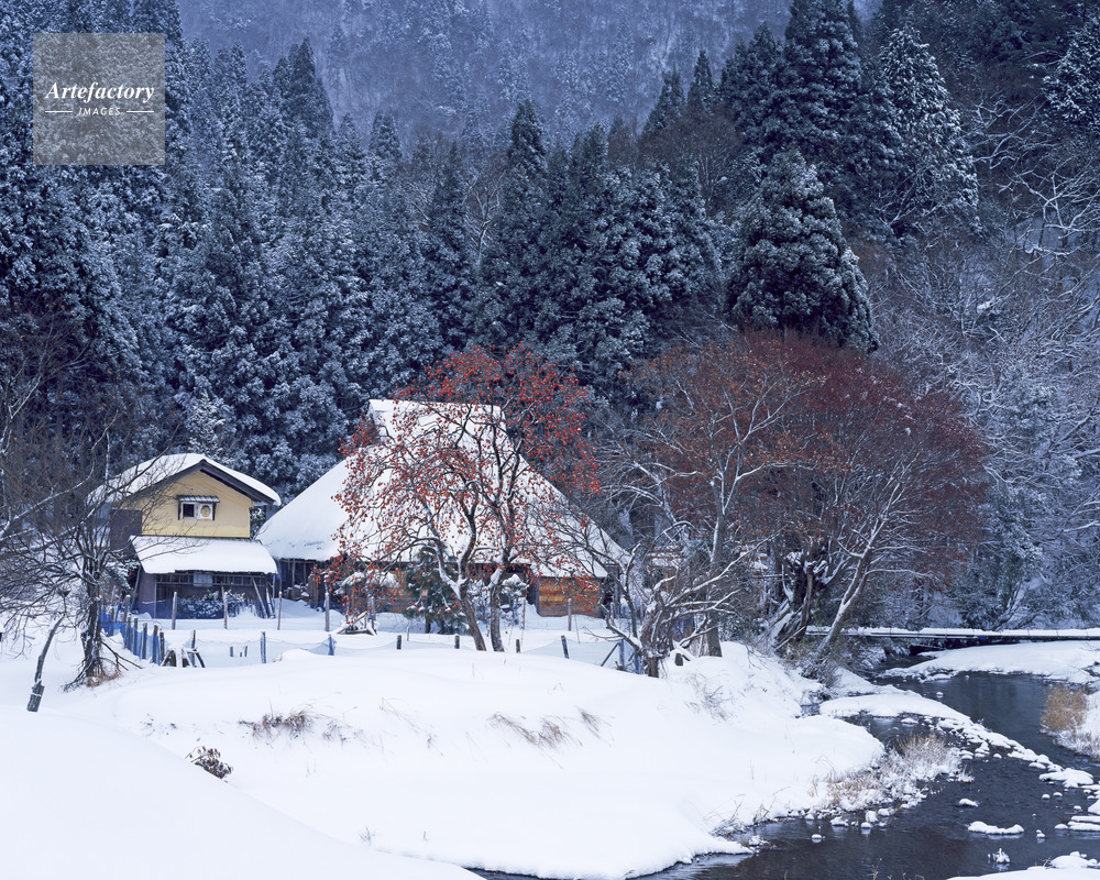 | 作品タイトル | 柿と茅葺き民家 雪景色 朽木 | モデルリリース | なし | |