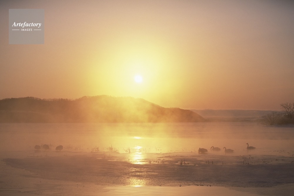 | 作品タイトル | 眠るタンチョウとハクチョウと朝焼けに染まるケアラシたつ湖 | モデルリリース | なし | |