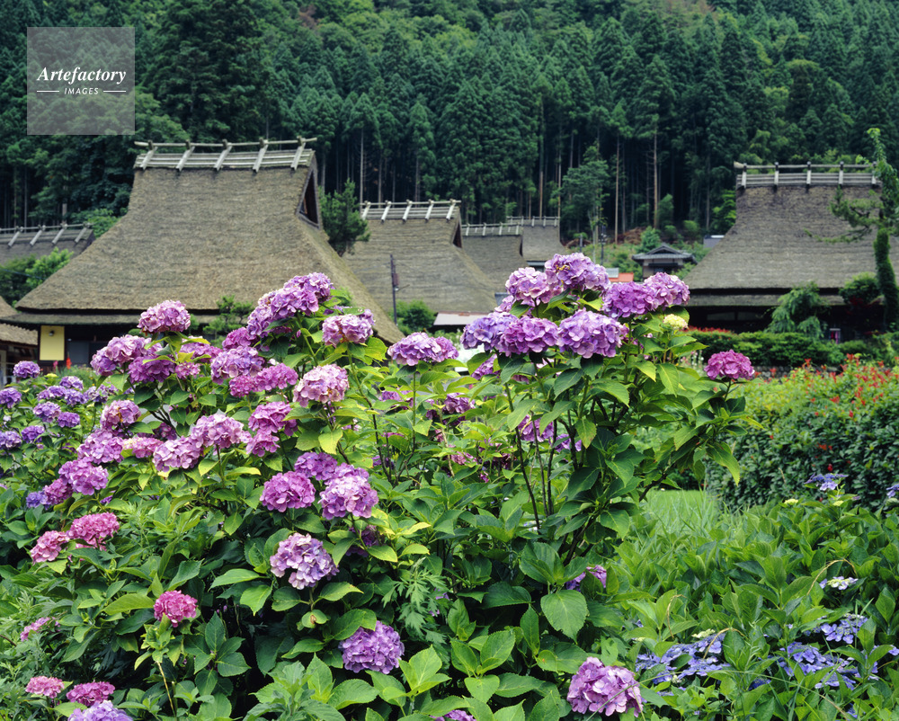 | 作品タイトル | 美山,茅葺民家,紫陽花 | モデルリリース | なし | |
