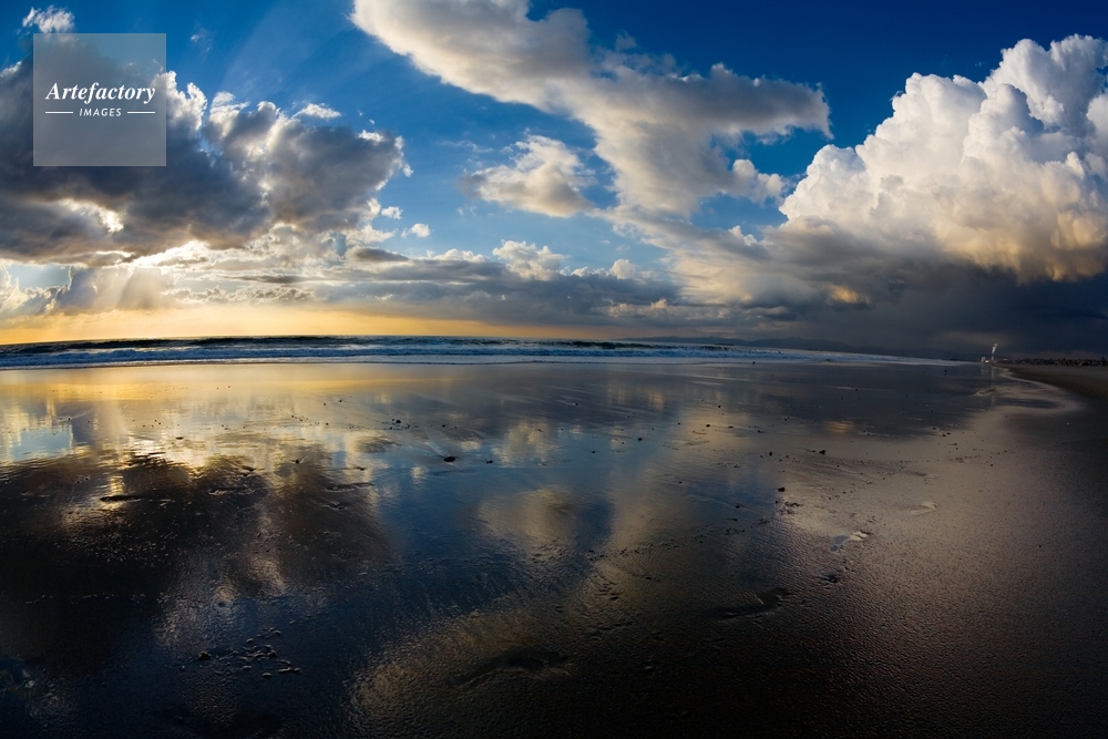 | キャプション | After rain today, clouds reflect on the beach at low tide at 16th St. in Hermosa Beach. | 制限事項 | ||