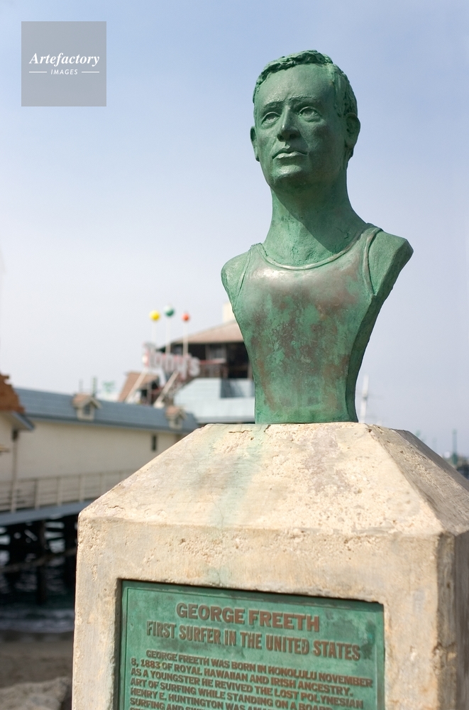 | キャプション | Before Duke Kahanamoku, there was George Freeth: brought to Redondo Beach from Hawaii by Henry Huntington in 1907 to demonstrate surfing. Taken yesterday on the Redondo Beach Pier. More about George Freeth... | 制限事項 | ||