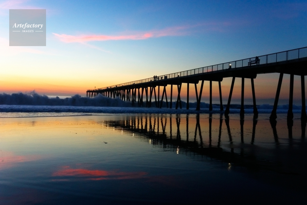 | キャプション | Big swell pounds the shore, while low tide creates a smooth reflection, last night at the Hermosa Beach Pier. | 制限事項 | ||