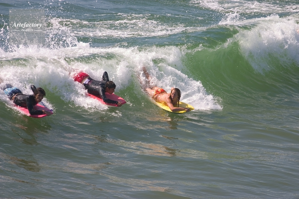 | キャプション | Colorful bodyboarders in small surf this afternoon at the Hermosa Beach pier. | 制限事項 | ||